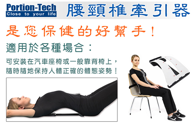 腰頸椎牽引器,適合長時間站立工作者、駕駛員、長時間端坐辦公室,腰頸椎勞損姿勢不正酸痛症等。適用於各種場合:車上、床上、坐椅、沙發等。