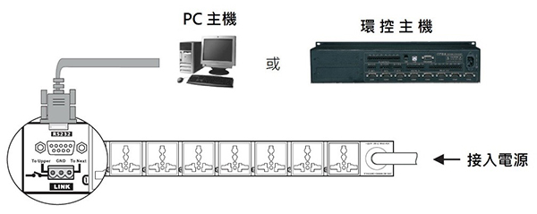 可多台電源時序連接,由第一台當主控,管理多台連動控制功能。