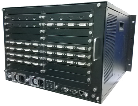 MEI-C-2100系列 數位模組化拼接處理器,最大可支援144路輸入、68路輸出,採模組化設計提供靈活運用的插卡式擴充結構,可自由選配VIDEO、VGA、RGB、DVI、SDI、HDMI、光纖等訊號。內建多種顏色可標示名稱、功能,以便對每個輸入訊號源進行標示管理與分類。並可按使用者工程須求功能來客製設備。