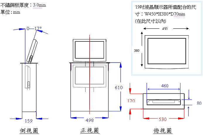 液晶LCD螢幕專用電動升降機 三視結構圖: