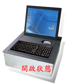 BM-1盒式液晶顯示器翻轉器主要應用於各種高級會議廳、交誼廳、高級多媒體網路系統、辦公室、住家、豪宅等場所,該翻轉器一般適用於17吋(含) 以下液晶顯示器(其它尺寸之液晶顯示器則可接受客製)。當打開翻轉器時,液晶顯示器會自動翻轉,角度成105°, 鍵盤亦同時自動升起與桌面齊平;當不使用時,液晶顯示器可自動翻轉隱藏於桌面內部。本產品具有防盜、防塵等功能,保持桌面平整,進而美化桌面。