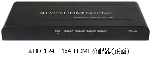 可以將1組輸入的HDMI數位影音訊號,同步輸出4組HDMI數位影音訊號,訊號同步輸出不失真。