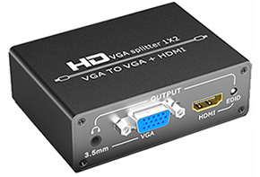 多功能轉換器、切換器、分配器、和矩陣系列,使您在使用視聽設備上能更方便、更舒適、高效能,更具成本效益。這是一款專用於將1組VGA及R/L類比立體聲聲音訊號透過數位化處理轉換為高解析HDMI訊號+VGA訊號同時輸出的產品,能輕鬆轉換成HDMI訊號,同時保留VGA訊號+3.5mm音訊輸出,可讓兩台顯示器可以同步顯示、聲音分離。可應用於:資料中心控制、資訊分配、會議室、教學環境和公司培訓場所,適合需要高畫質數位影音播放及影音應用環境使用。