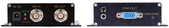 這是一款專用於將1組高解析數位分量串列介面(SD-SDI、HD-SDI、3G-SDI訊號)轉換為VGA+3.5mm立體聲訊號的產品,能輕鬆轉換成VGA訊號,方便可運用較經濟的VGA顯示器及擴音喇叭於該SDI訊號環境中,並同時具有1組SDI回路輸出,可用來銜接SDI顯示設備來直接播放,亦可串接SDI延伸器或轉換器來更加延長SDI訊號的傳輸距離,方便整合於專業廣播等級影音應用環境之中。