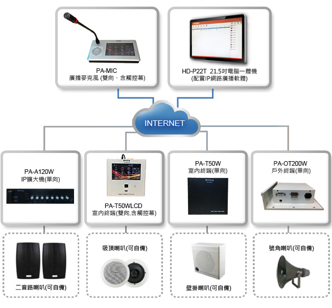 數位IP網路廣播系統之設計乃透過網路進行傳輸的數位廣播系統,是一套純數位音訊廣播系統,系統採用先進的音訊壓縮技術來進行數位音訊訊號傳輸,來進行背景音樂廣播、人聲廣播、音樂響鈴、聽力考試和消防緊急廣播等,並具有自動流量調整、聲音補修功能。