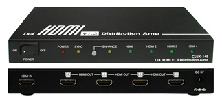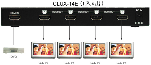 CLUX-14E_ HDMI v1.3版分配放大器系列,是HDMI訊號最新解決方案!最大影像頻寬225MH(6.75Gbps)可完全支援影像色深處理和數位聲音無壓縮處理。HDMI v1.3 DA 系列除了影像分配外,並提供訊號放大作用和平衡補償功能,以提供高效能的影音 I/O 處理。