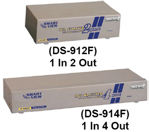 透過DS-912F、DS-914F、DS-918F DVI (Digital Visual Interface)視訊分配器,你可將一台主機的影像同時顯示在2、4、8台甚至更多台的顯示器上。
